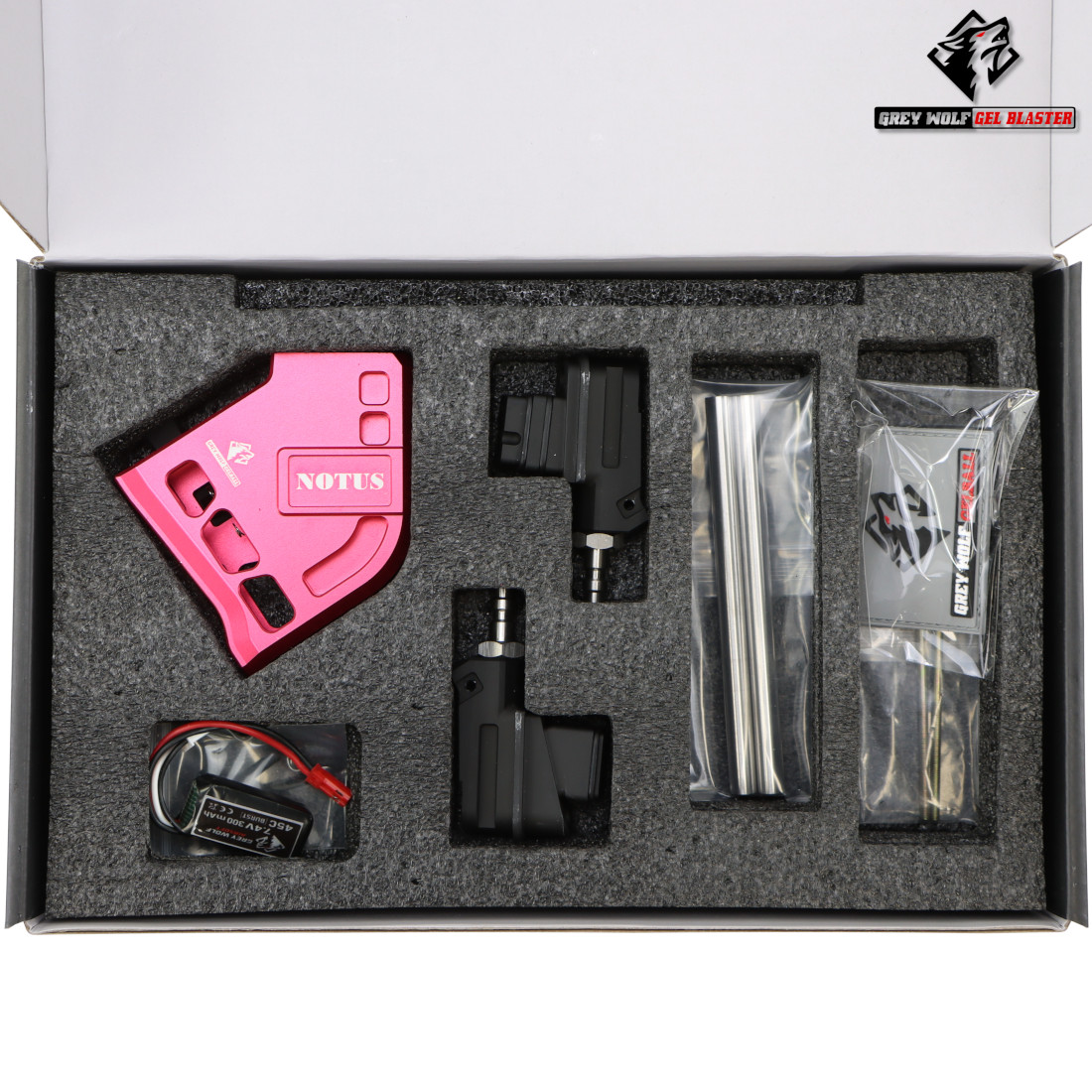 - A custom 7,4v Grew Wolf 300mAh battery, provides power for the M4 magazines Gel Ball motor.