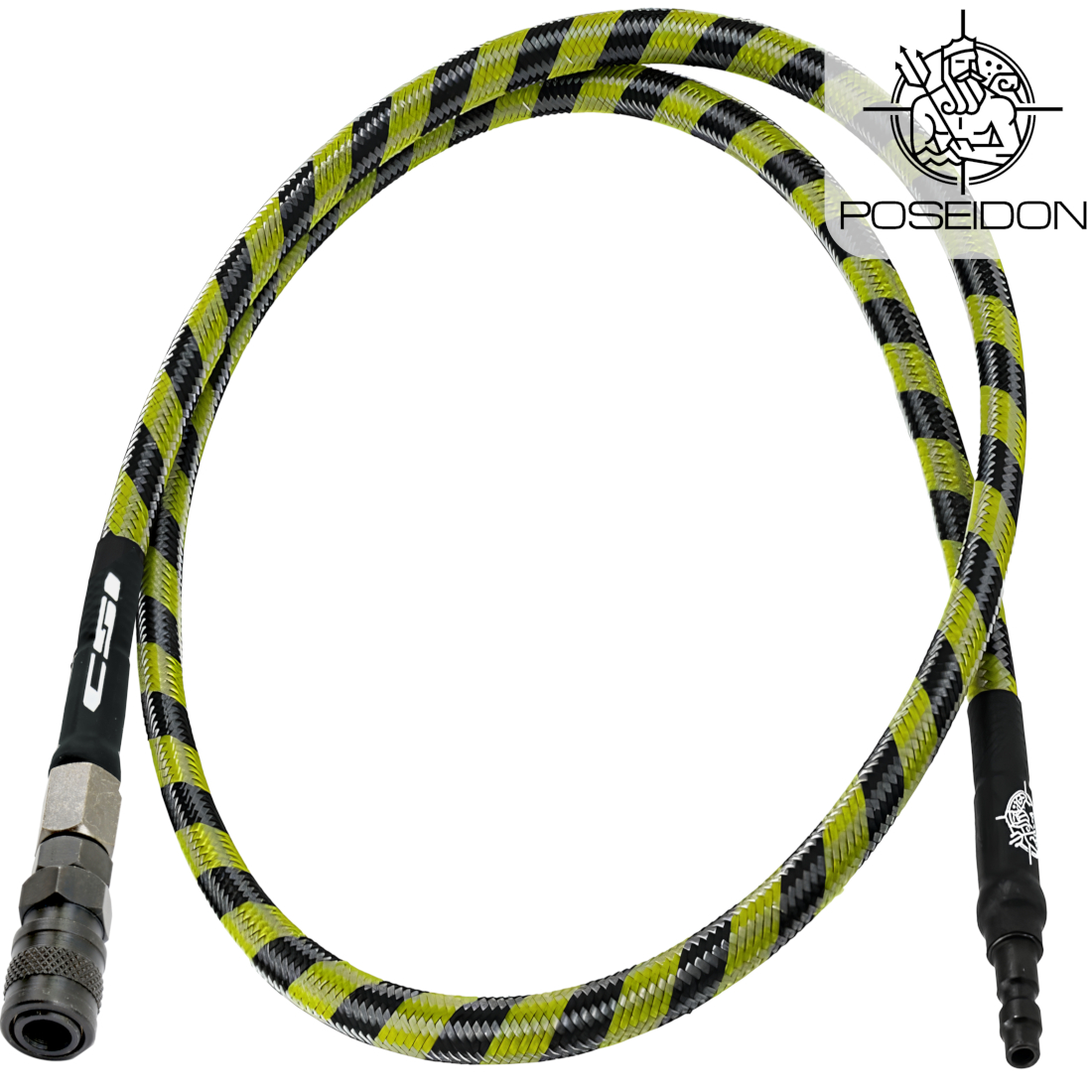 The Poseidon PHPA Yellow and Purple Braided HPA Air Line provides a durable, flexible connection between your HPA tank and blaster system. Featuring reinforced braided construction and a steel quick-disconnect fitting, it delivers reliable performance for high-pressure HPA setups. For players running HPA setups, the Poseidon PHPA braided air line provides the strength, flexibility and reliability needed to keep your system performing at its best.