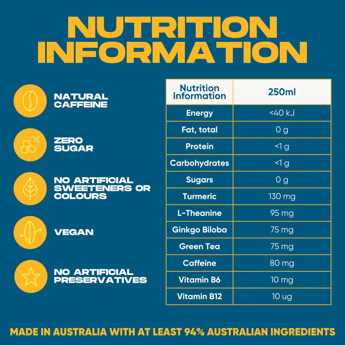 Enjoy fruity, refreshing energy with Shine+ Peach Passionfruit — clean caffeine, zero sugar and nootropic support in a handy 250 ml slim can. Choose Shine+ Peach Passionfruit 250 ml for a deliciously light, smarter source of energy — combining natural caffeine and nootropics to keep you focused and ready all day.