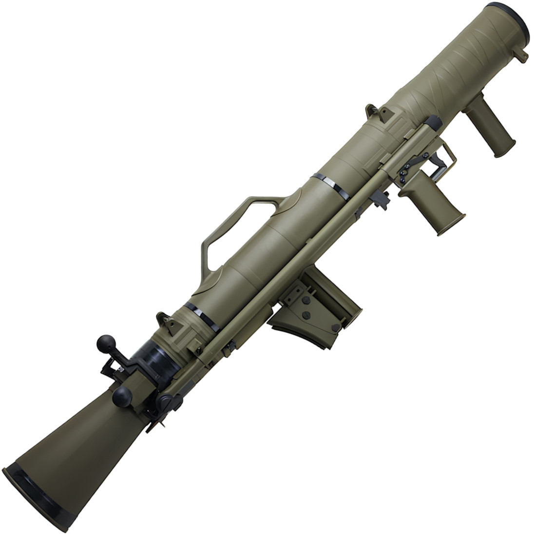 Constructed primarily from lightweight, nylon fibre reinforced polymer with metal-reinforced internal components, this launcher keeps overall weight manageable while preserving durability where it matters most. The realistic recoiless rifle profile features detailed dummy rifling, an authentic venturi-style locking mechanism, adjustable iron sights and a tactical Picatinny rail for optics or accessories.